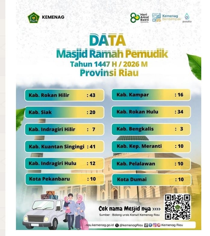 Program Masjid Ramah Pemudik ini merupakan bagian dari upaya memberikan kenyamanan bagi masyarakat yang melintas di wilayah Riau, sekaligus mengoptimalkan peran masjid sebagai pusat pelayanan umat.