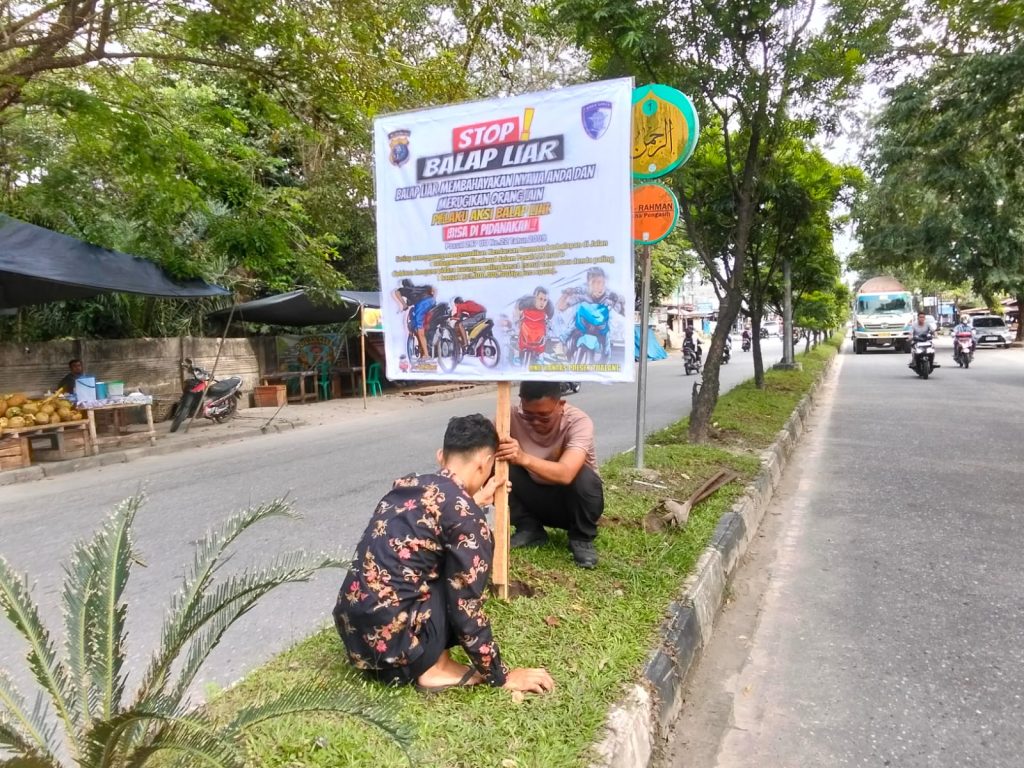 Antisipasi Balap Liar, Polsek Tualang Pasang Spanduk Himbauan di Jalur Rawan