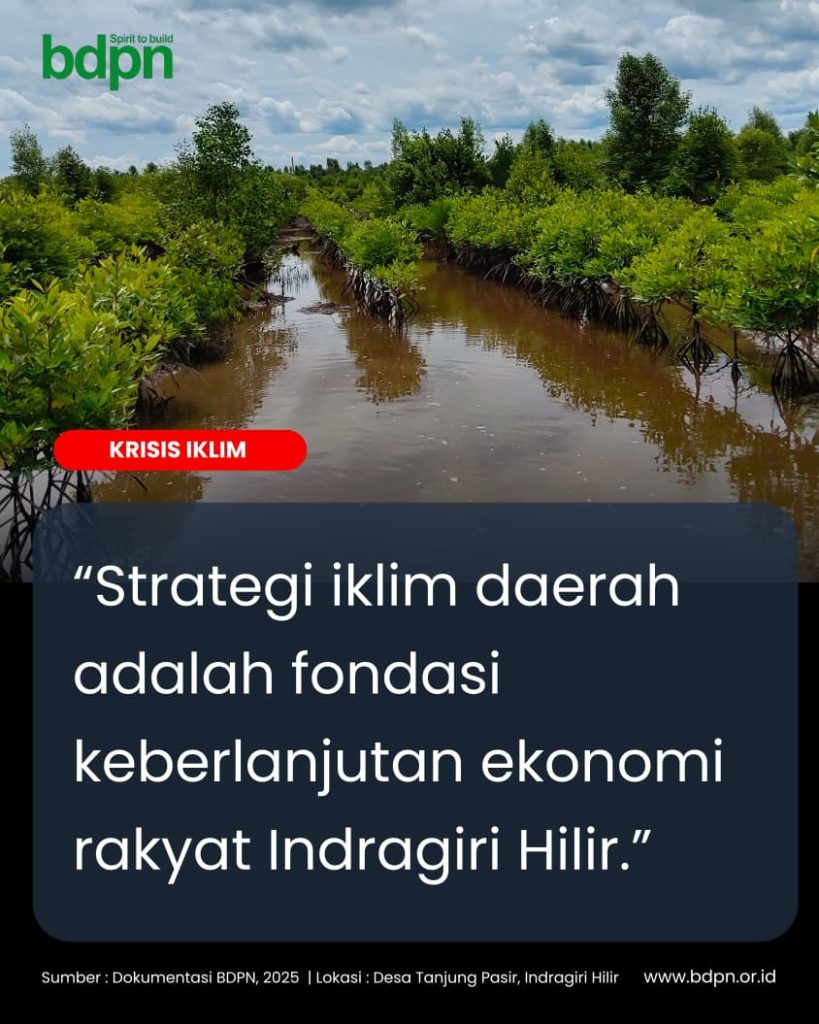 BDPN memandang bahwa keberlanjutan pembangunan di Indragiri Hilir hanya dapat dicapai apabila kebijakan ekonomi dan kebijakan iklim disinergikan secara sistematis. Pembangunan tanpa perlindungan ekologis pada akhirnya berpotensi melemahkan capaian ekonomi itu sendiri, terutama di daerah pesisir gambut dan wilayah rawan banjir hujan yang sangat rentan.