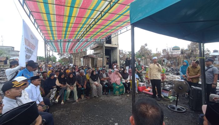 RETEH – Menepati janji untuk memberikan dukungan penuh bagi korban bencana, Bupati Indragiri Hilir (Inhil), H. Herman, turun langsung ke lokasi kebakaran di Pasar Bom, Kelurahan Pulau Kijang, Kecamatan Reteh, Minggu (12/4/2026). Kedatangan Bupati bersama Ketua TP-PKK Inhil dan jajaran ini bertujuan untuk menyerahkan bantuan skala besar sekaligus memberikan penguatan moril bagi warga yang kehilangan tempat tinggal.