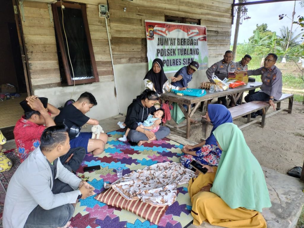 Siak, Perawang – Kepedulian terhadap sesama terus ditunjukkan Polsek Tualang. Melalui program Jumat Berkah, jajaran Polsek Tualang melaksanakan kegiatan berbagi sembako kepada Yayasan Berkah Ikhlas Hati yang berada di Jalan Garuda Km 9, Kampung Perawang Barat, Kecamatan Tualang, Kabupaten Siak, Jumat (9/1/2026).