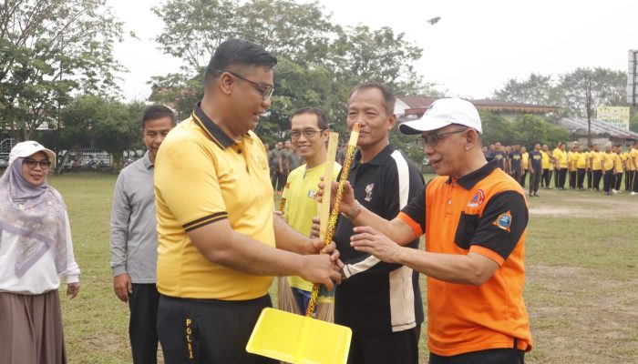 Bangkinang Kota, Kapolres Kampar AKBP Boby Putra Ramadhan Sebayang, turut hadir dalam apel dan gotong royong serentak dalam rangka mendukung Gerakan Indonesia Asri (Aman, Sehat, Resik dan Indah) di Lapangan Pelajar Bangkinang, Kelurahan Langgini, Kecamatan Bangkinang Kota, Jumat (13/02/2026).