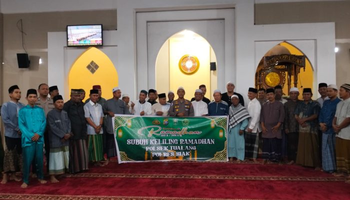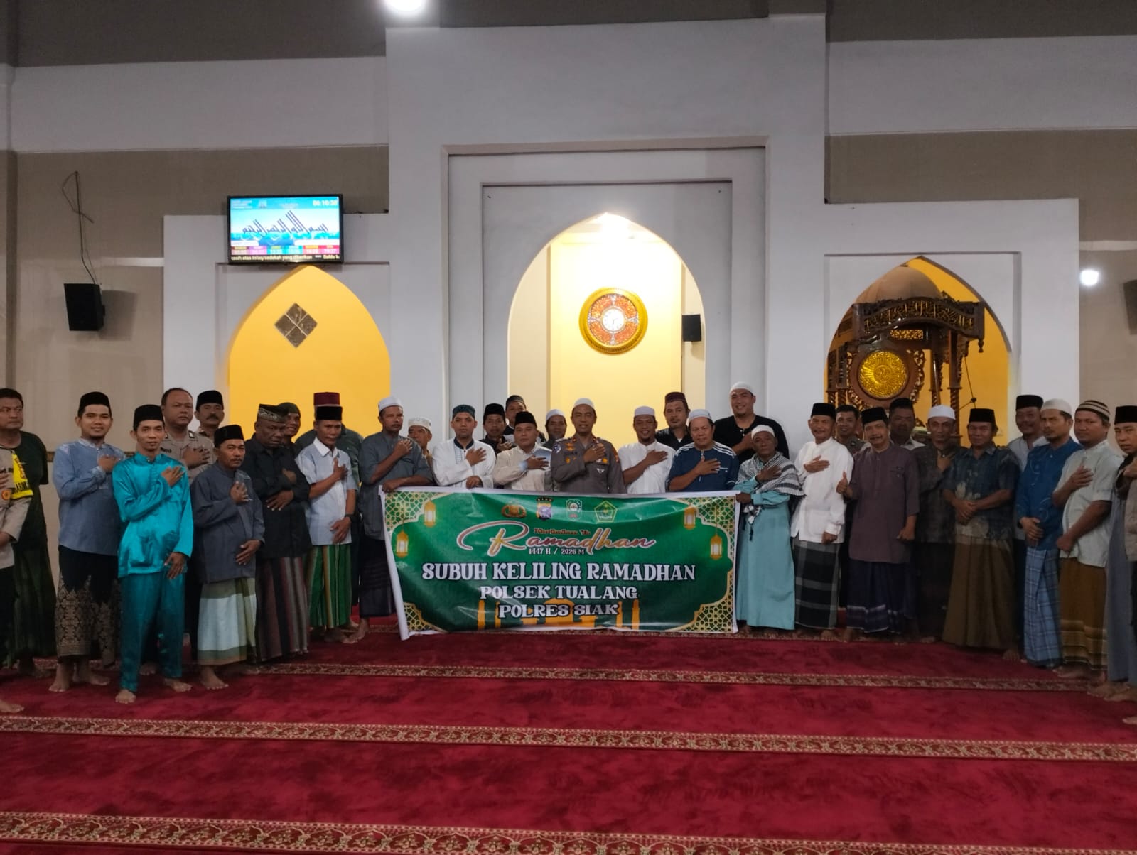 Siak, Perawang– Kapolsek Tualang Kompol Teguh Wiyono, S.H., M.H memimpin kegiatan Subuh Keliling (Suling) bersama personel Polsek Tualang di Masjid Nurul Hidayah KM 7, Kelurahan Perawang, Kecamatan Tualang, Kabupaten Siak, Jumat (6/3/2026) Subuh.