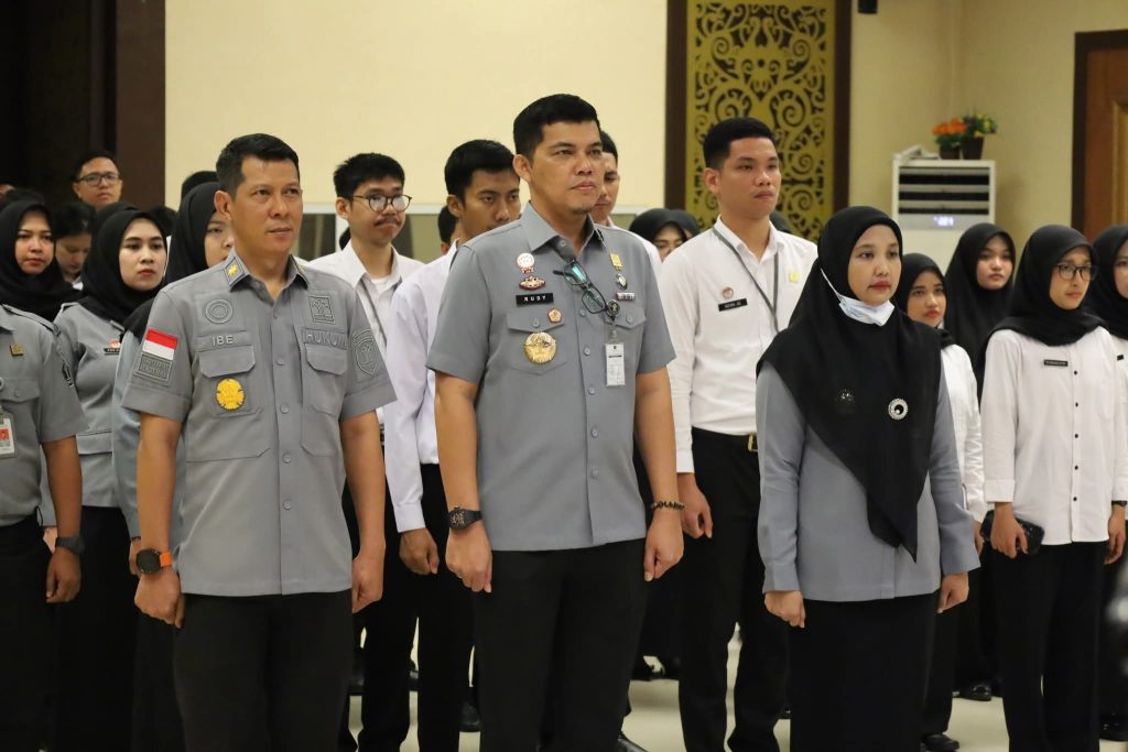 PEKANBARU – Kantor Wilayah Kementerian Hukum Riau (Kanwil Kemenkum Riau) mengikuti Apel Bersama di Lingkungan Kementerian Koordinator Bidang Hukum, HAM, Imigrasi, dan Pemasyarakatan yang dilaksanakan secara terpusat pada Senin 12/1/2026, Bertempat di Ruang Serbaguna Ismail Saleh, kegiatan ini diikuti secara virtual oleh Kepala Kantor Wilayah, Rudy Hendra Pakpahan, didampingi Kepala Divisi Pelayanan Hukum, Febri Mujiono, dan Kepala Divisi P3H, Yeni Nel Ikhwan,