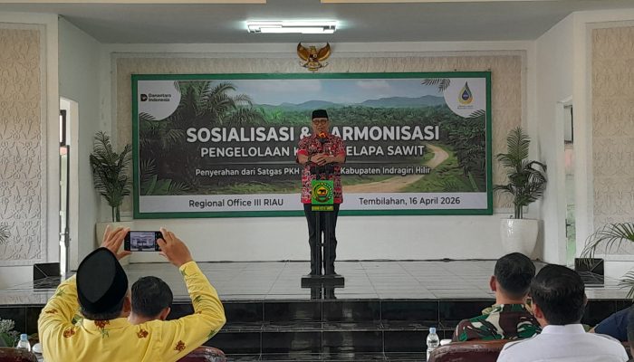 TEMBILAHAN – PT Agrinas Palma Nusantara (Persero) Regional Het 3 Riau menggelar kegiatan sosialisasi dan harmonisasi pengolahan kebun kelapa sawit, sekaligus penyerahan lahan oleh Satgas PKH diwilayah Kabupaten Indragiri Hilir(Inhil), yang dilaksanakan di Aula Grahabakti Makodim 0314/Inhil, Kamis (16/4/2026).