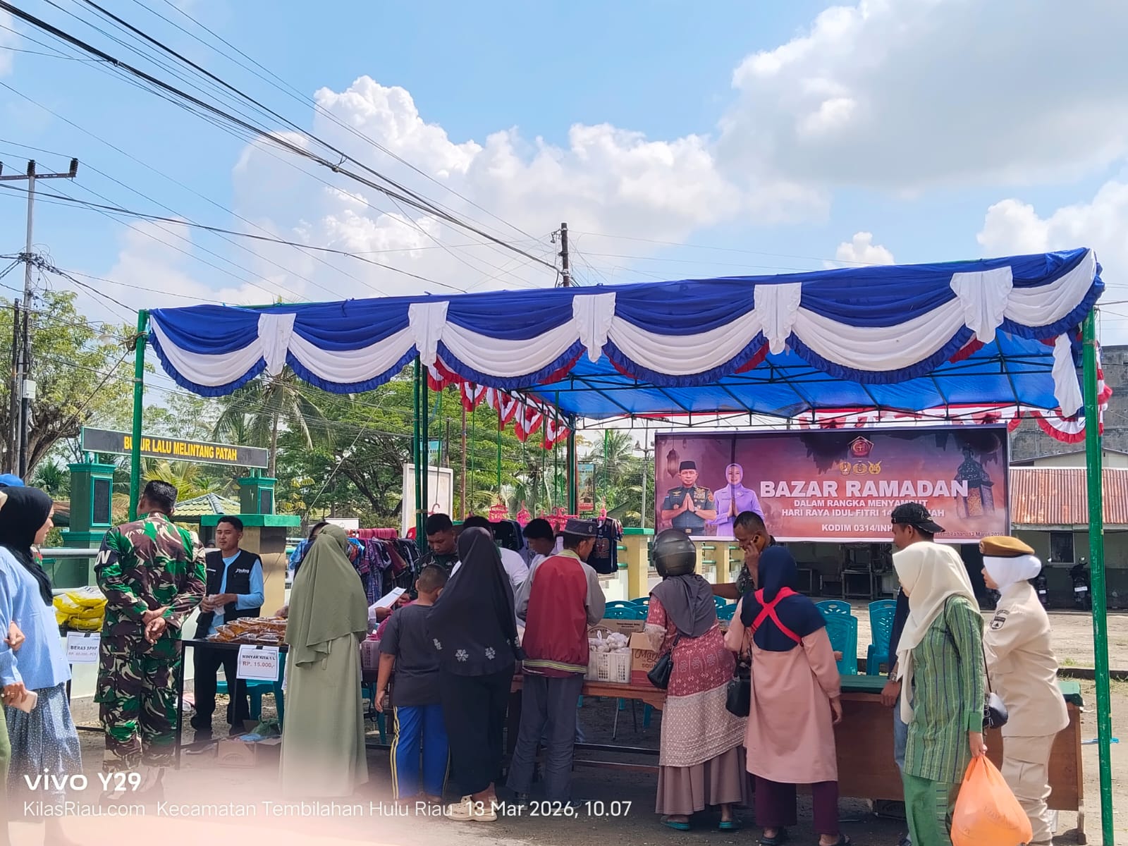 TEMBILAHAN – Komando Distrik Militer (Kodim) 0314/Inhil menggelar Bazar Ramadhan dalam rangka menyambut Hari Raya Idul Fitri 1447 Hijriah, Jumat (13/3/2026). Kegiatan tersebut dilaksanakan di depan Makodim 0314/Inhil dan mendapat sambutan antusias dari masyarakat.
