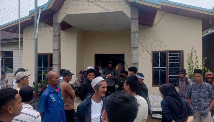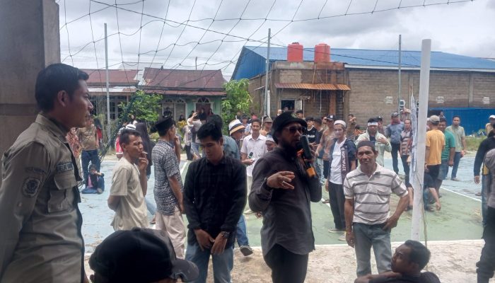 GAUNG- Ratusan masyarakat asli tempatan di Desa Belantaraya, Kecamatan Gaung, Kabupaten Indragiri Hilir, menggelar aksi damai tepat didepan halaman Kantor Desa, pada Rabu pagi, 15 April 2026.