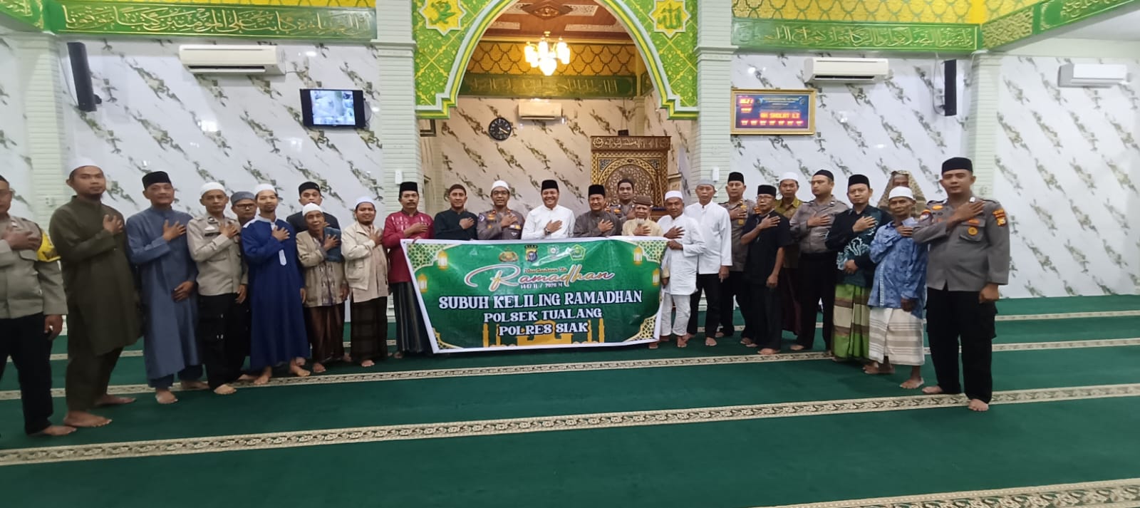 Siak, Perawang – Kapolsek Tualang Kompol Teguh Wiyono, SH, MH melaksanakan kegiatan Subuh Keliling (Suling) Ramadhan di Masjid Al-Hidayatul Muttaqin, Kelurahan Perawang, Kecamatan Tualang, Kabupaten Siak, Jumat (13/3/2026).