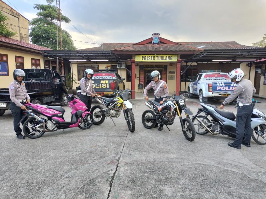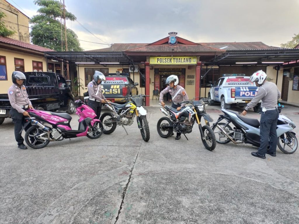 Penindakan dilakukan di wilayah Kecamatan Tualang sebagai upaya menciptakan keamanan dan ketertiban lalu lintas serta menekan pelanggaran yang berpotensi mengganggu kenyamanan masyarakat.