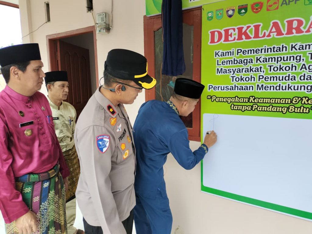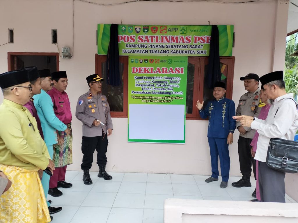 Peresmian Kantor Satlinmas dan sekaligus Penandatanganan Deklarasi serta bantuan sembako kepada petugas Satlinmas ini menjadi bentuk sinergitas antara Polri dan pemerintah kampung dalam menciptakan situasi kamtibmas yang aman dan kondusif di wilayah Kecamatan Tualang. Red