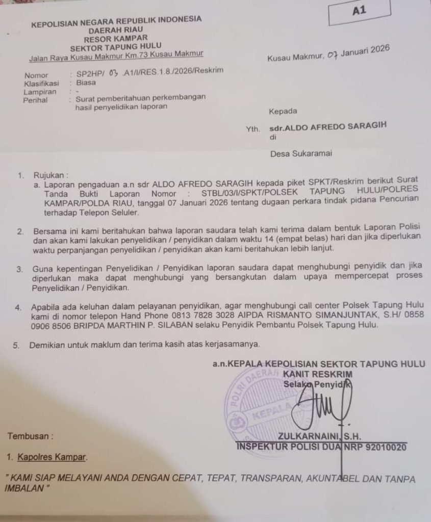 Kasus ini kini dalam penanganan Polsek Tapung Hulu, Polres Kampar, dan menjadi ujian nyata keberanian aparat penegak hukum dalam menjawab keresahan masyarakat yang selama ini hidup dalam bayang-bayang teror pencurian.