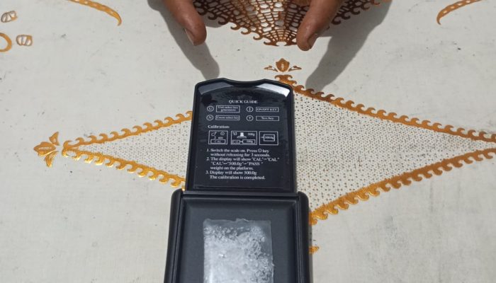 Saat dilakukan penggeledahan yang disaksikan oleh warga, petugas menemukan satu paket plastik bening berisi kristal putih diduga sabu di dalam kantong celana tersangka. Tersangka juga mengakui bahwa barang tersebut adalah miliknya.