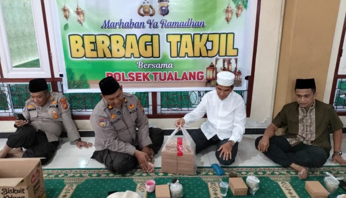 Perawang – Dalam rangka mengisi Bulan Suci Ramadhan 1447 H/2026 M dengan kegiatan positif, Polsek Tualang melaksanakan aksi sosial berbagi ( Pembagian Takjil )” Paket Buka Puasa Bersama di Masjid Nurul Islam KPR 1, Kelurahan Perawang, Kecamatan Tualang, Kabupaten Siak, Sabtu (28/2/2026).