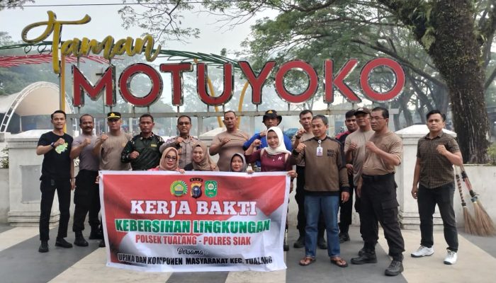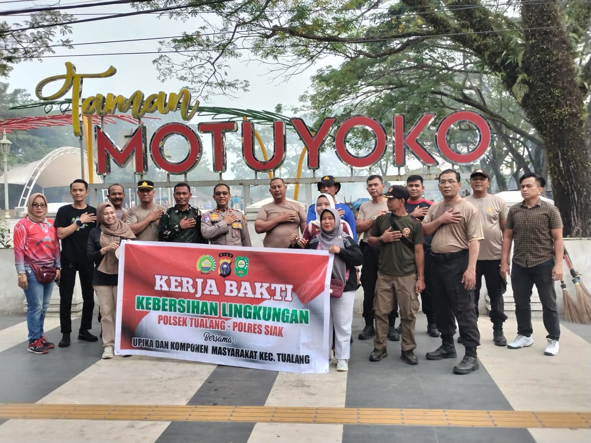 Siak Perawang – Dalam rangka menjaga kebersihan lingkungan dan mempererat sinergitas lintas instansi, jajaran Polsek Tualang melaksanakan kegiatan kurve/kerja bakti bersama pada Jumat (13/2/2026) pukul 07.00 WIB di Taman Motuyoko, Kelurahan Perawang, Kecamatan Tualang, Kabupaten Siak.
