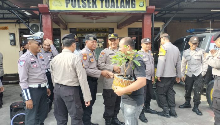 Kegiatan yang dimulai pukul 08.00 WIB tersebut dipimpin langsung Kapolsek Tualang Kompol Teguh Wiyono, S.H., M.H., serta dihadiri para Kanit, Panit, Kasi dan personel Polsek Tualang.