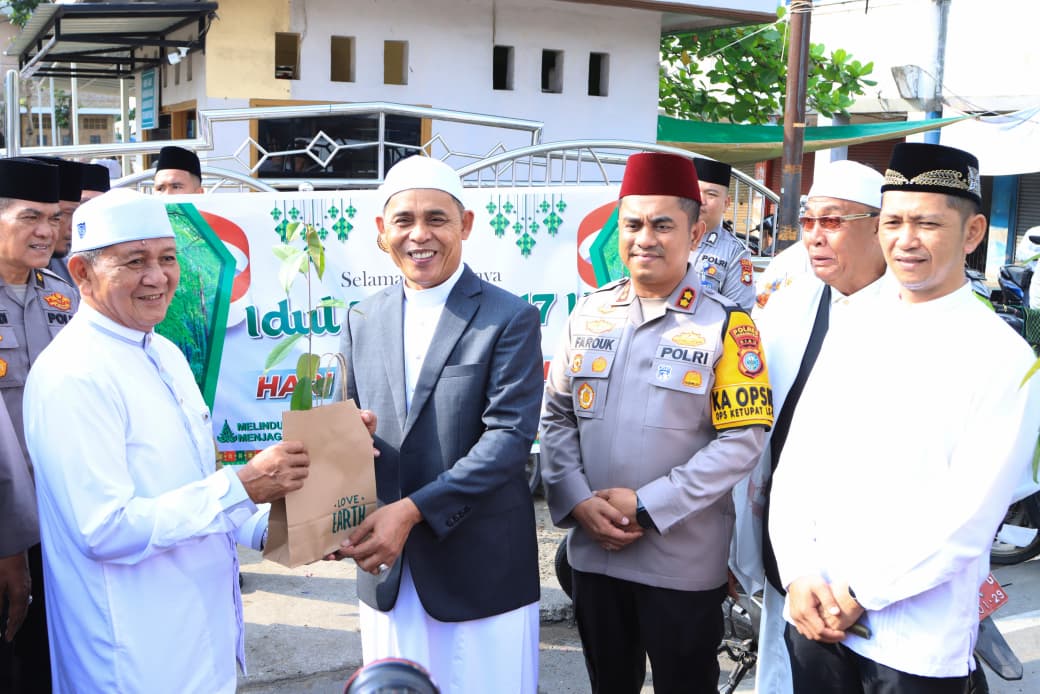 Antusiasme masyarakat terlihat tinggi. Usai pelaksanaan sholat, warga dengan tertib menerima bibit pohon yang telah disiapkan panitia. Kegiatan berlangsung aman, lancar, dan penuh kebersamaan, mencerminkan semangat Idul Fitri yang sarat nilai kepedulian dan gotong royong.